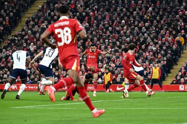 英格兰联赛杯半决赛次回合,凭借哈克波、萨拉赫、索博斯洛伊、范戴克的进球,利物浦4-0战胜热刺,总比分4-1晋级决赛。